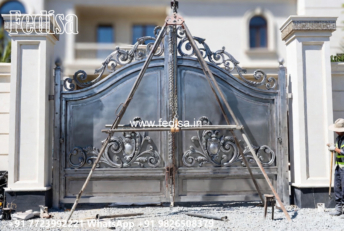 105 Feet Gate Design, Concrete Main Gate Design Stainless Steel Main Gates