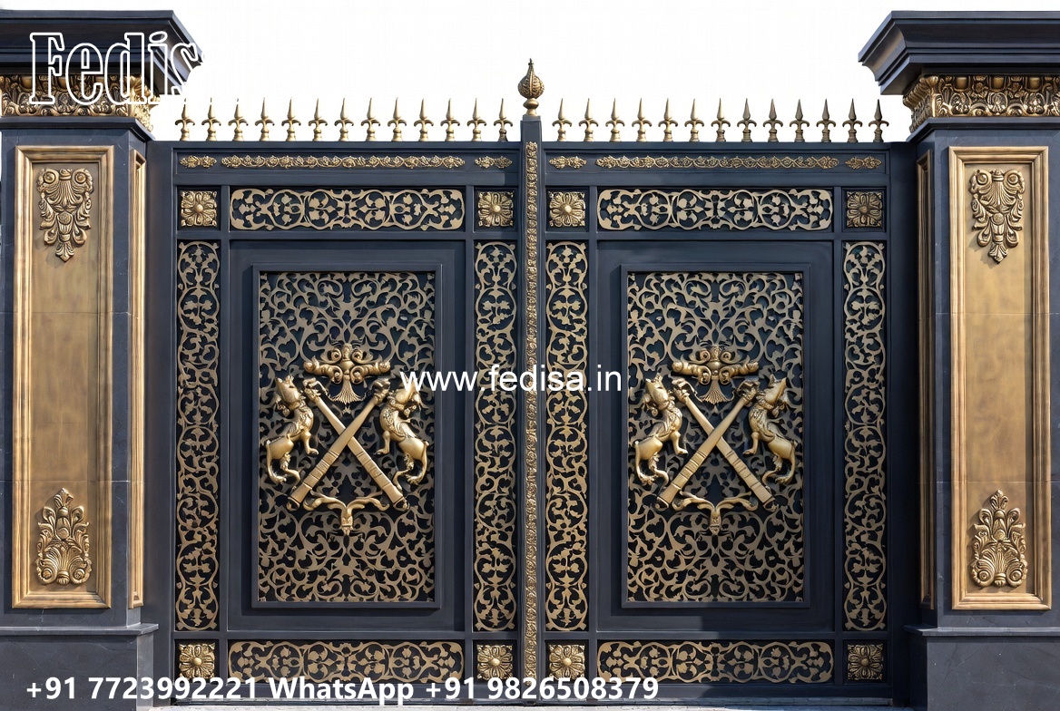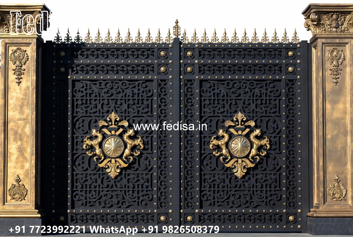Beautiful Gate Designs, Steel Bar Gate Design Main Gate Lighting In Outdoor