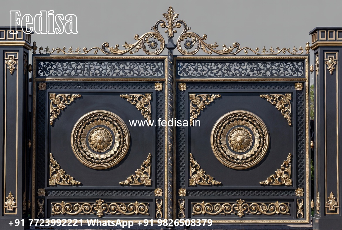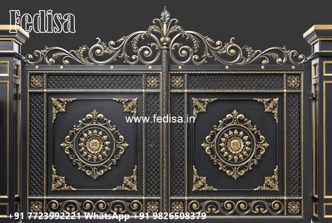 Cast Iron Gate Design, Sliding Folding Gate Design Main Gate Lighting In Outdoor