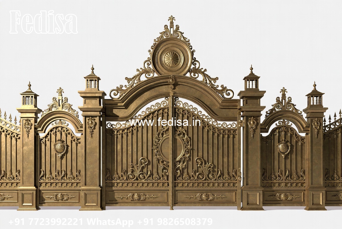 Compound Wall Gate Price, Steel Framed Wooden Gates Main Gate Lighting In Outdoor