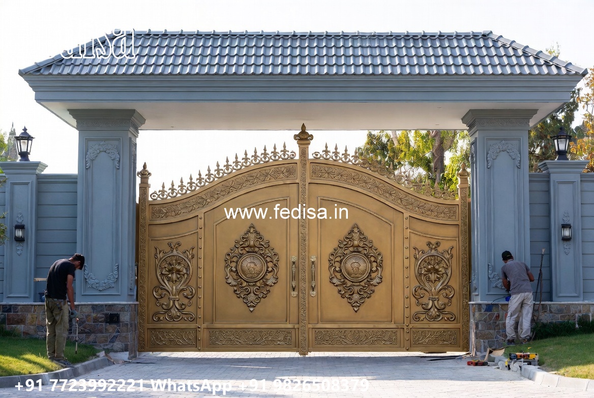 Front Steel Gate Design, Home Front Gate Design Main Gate Lighting In Outdoor