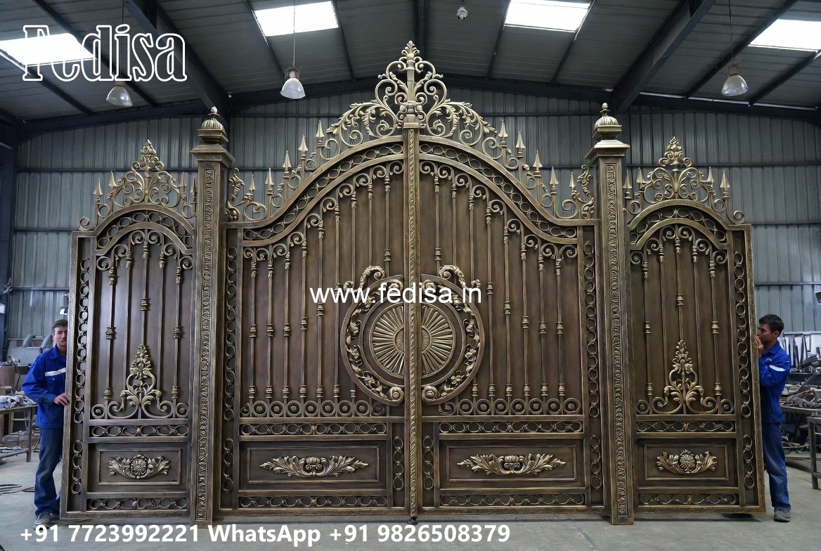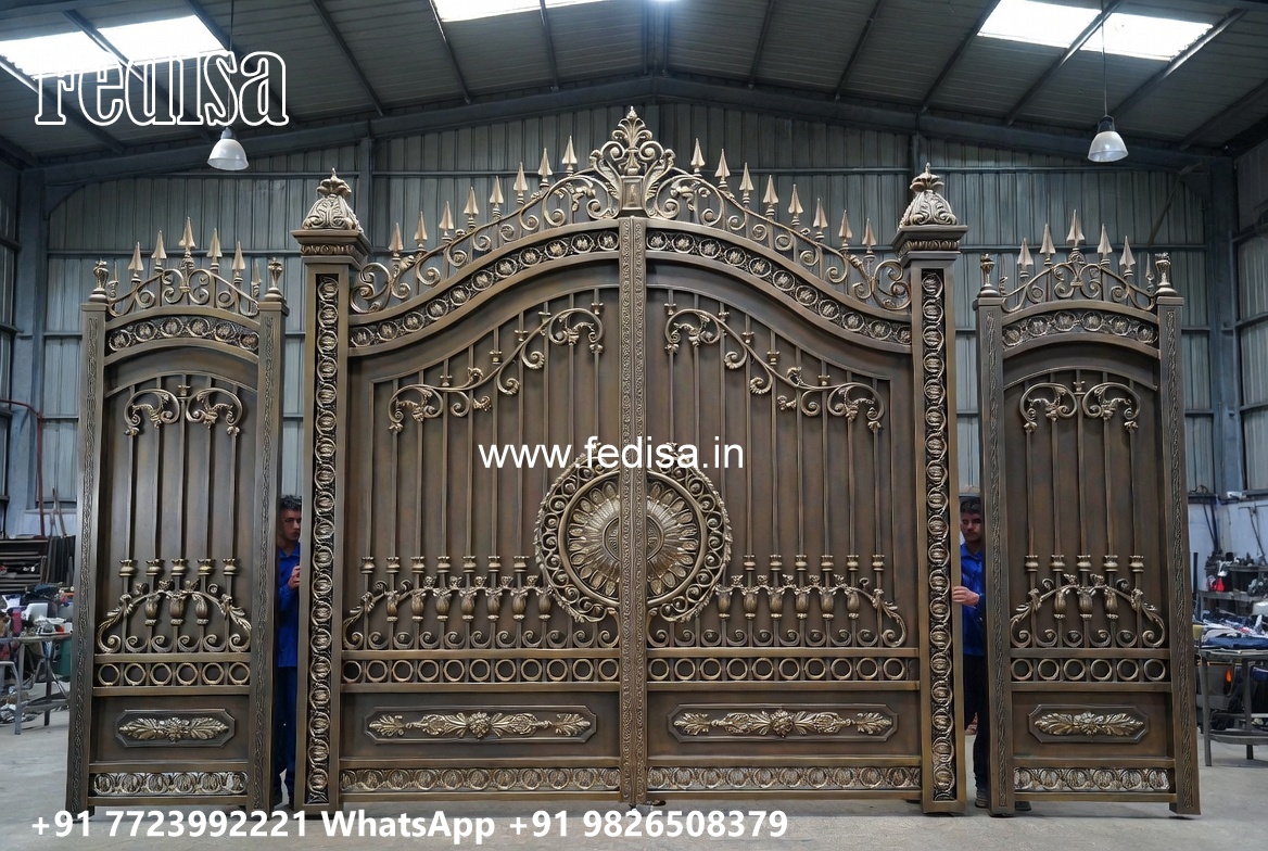 Gate Design 2074, Steel Gate Single Palla Main Gate Lighting In Outdoor