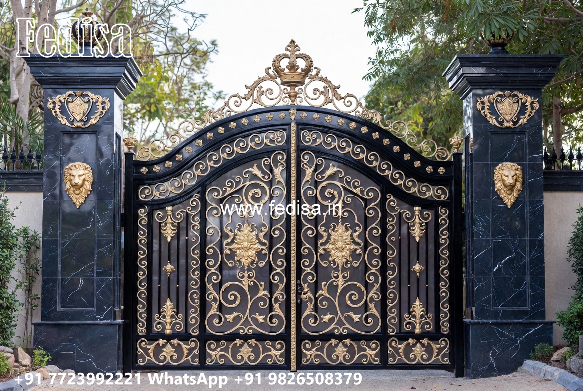 Gate Design 2155, Metal Front Gate Design Main Gate Lighting In Outdoor