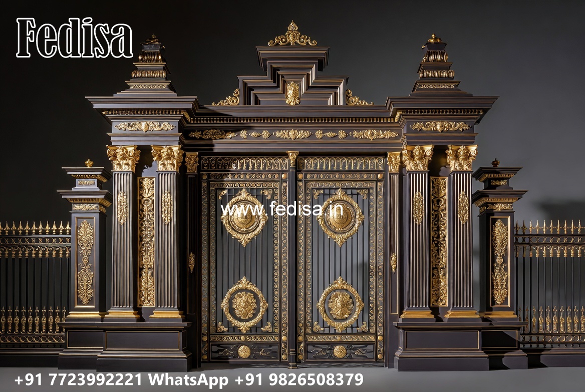 Gate Design Pipe, Wood And Steel Gate Design Main Gate Lighting In Outdoor