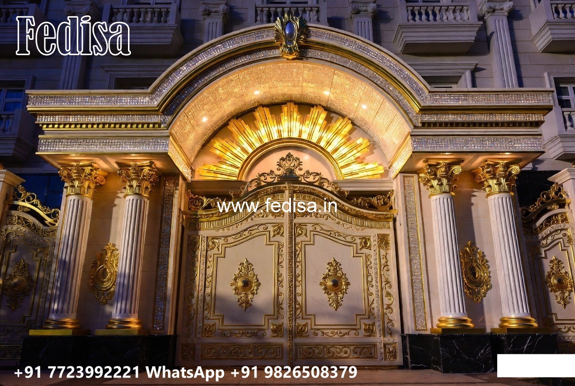 Grill Gate Ka Design, Entrance Pillar Design Residential Gate-wpc Wood Gate