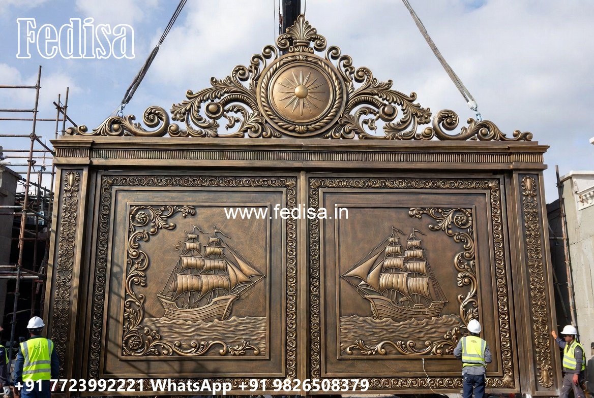 Hpl Gate Design, Fancy Wrought Iron Gates Main Gate Lighting In Outdoor