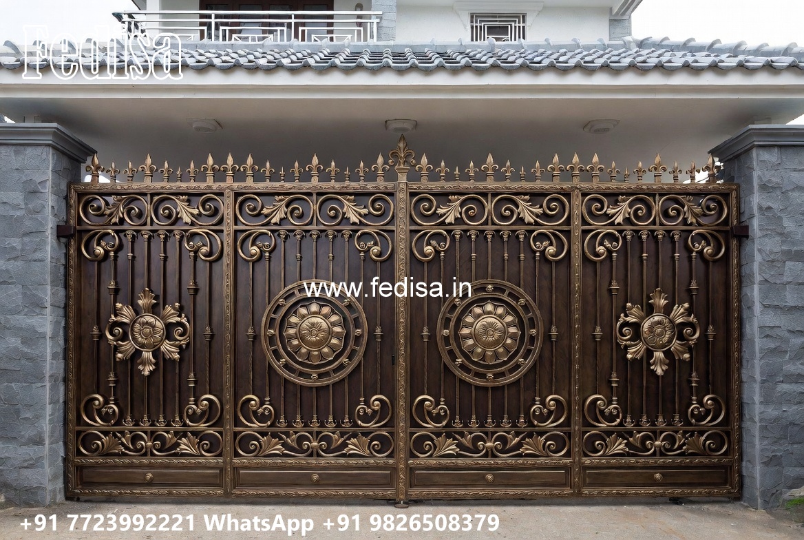 Hpl Gate Design, Iron Sliding Gate Design Main Gate Lighting In Outdoor