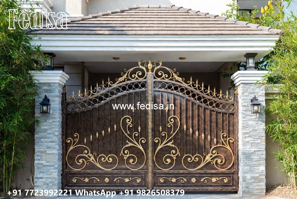 Lightweight Gate Design, Laser Cut Gate Panels Main Gate Lighting In Outdoor