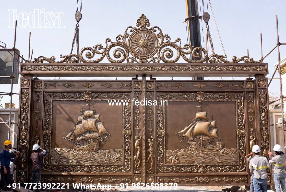 Loha Ka Gate Ka Design, Gol Gate Design Main Gate Lighting In Outdoor