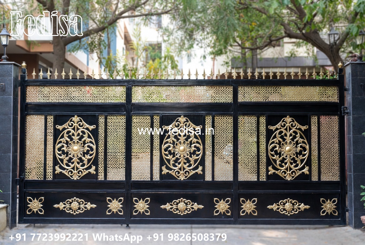 Lohe Ke Gate Ka Colour, Gate Panel Design Main Gate Lighting In Outdoor
