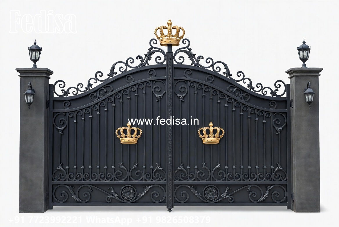 Lohe Ke Gate Ka Colour, Iron Gate Design Simple Main Gate Lighting In Outdoor