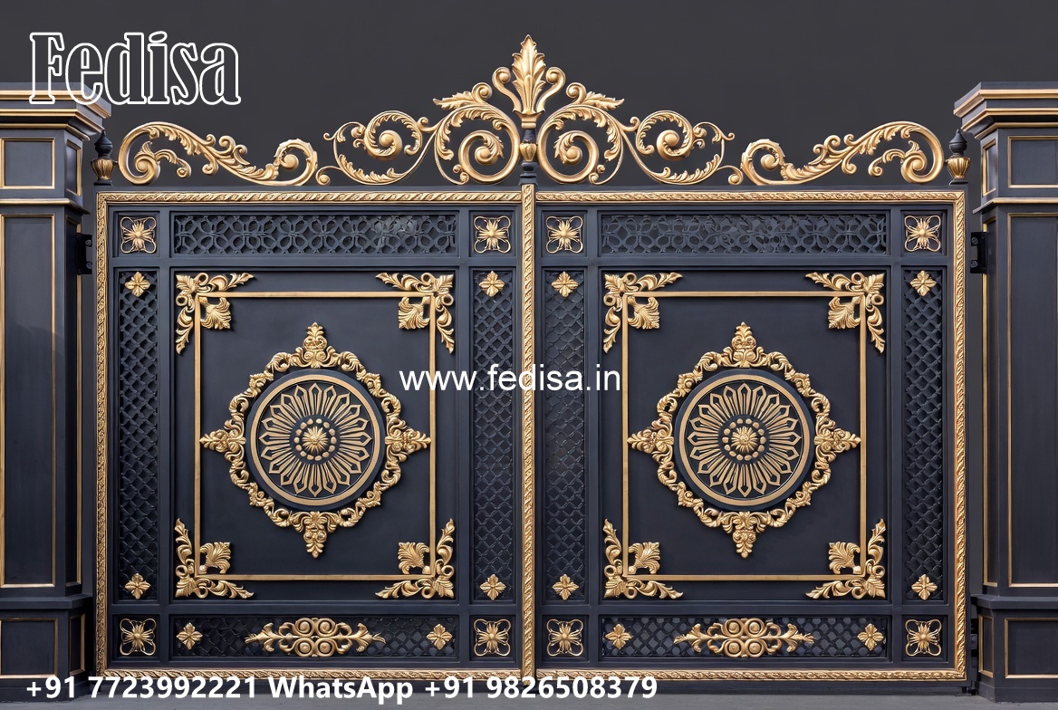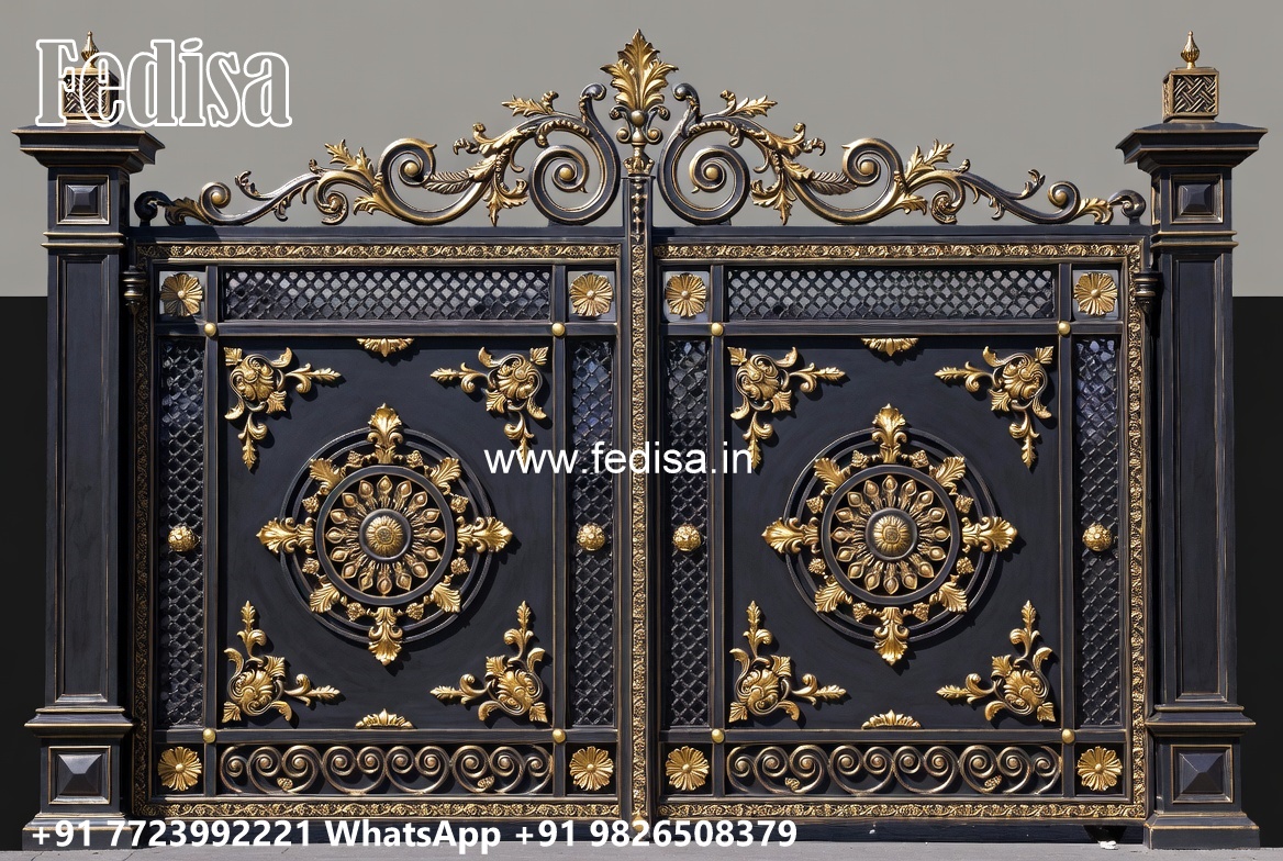 Lohe Ke Gate Ka Colour, Square Bar Steel Gate Design Main Gate Lighting In Outdoor
