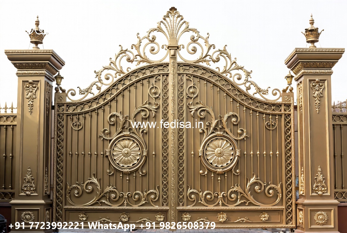 Mane Gate Design, Boundary Wall Grill Main Gate Lighting In Outdoor