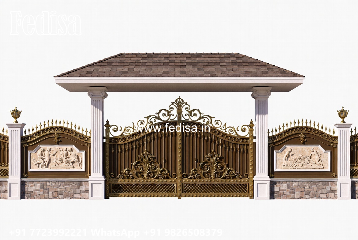Mane Gate Design, Double Entry Gate Main Gate Lighting In Outdoor