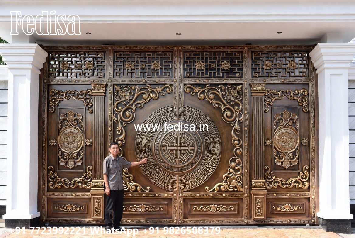 Mane Gate Design, Iron Plate Gate Design Main Gate Lighting In Outdoor