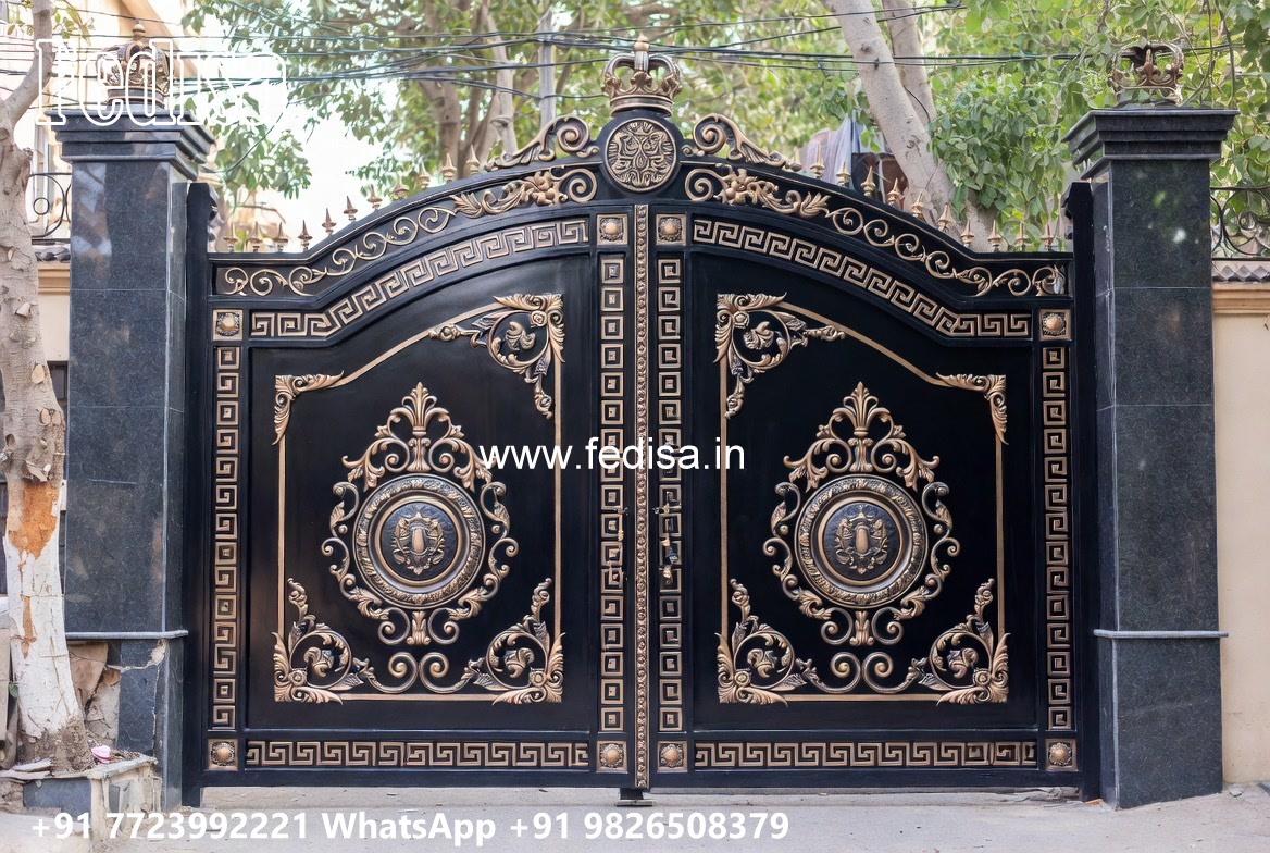 Security Gate Design, Gate Design Steel And Iron Main Gate Lighting In Outdoor