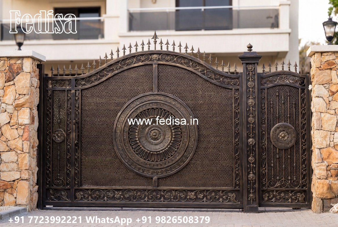 Security Gate Design, One Side Iron Gate Design Main Gate Lighting In Outdoor