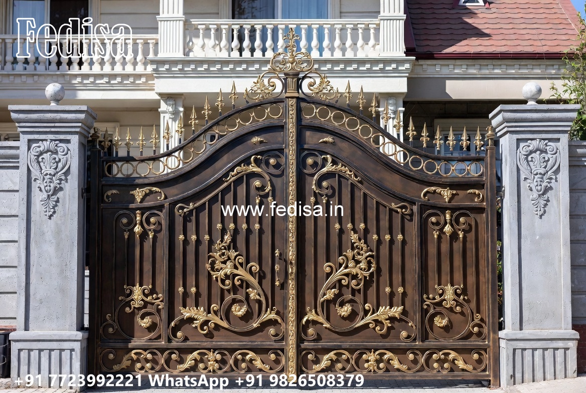 Slide Gate Design For House, Compound Wall Sliding Gate Design Iron Gate Stock Photos And Images