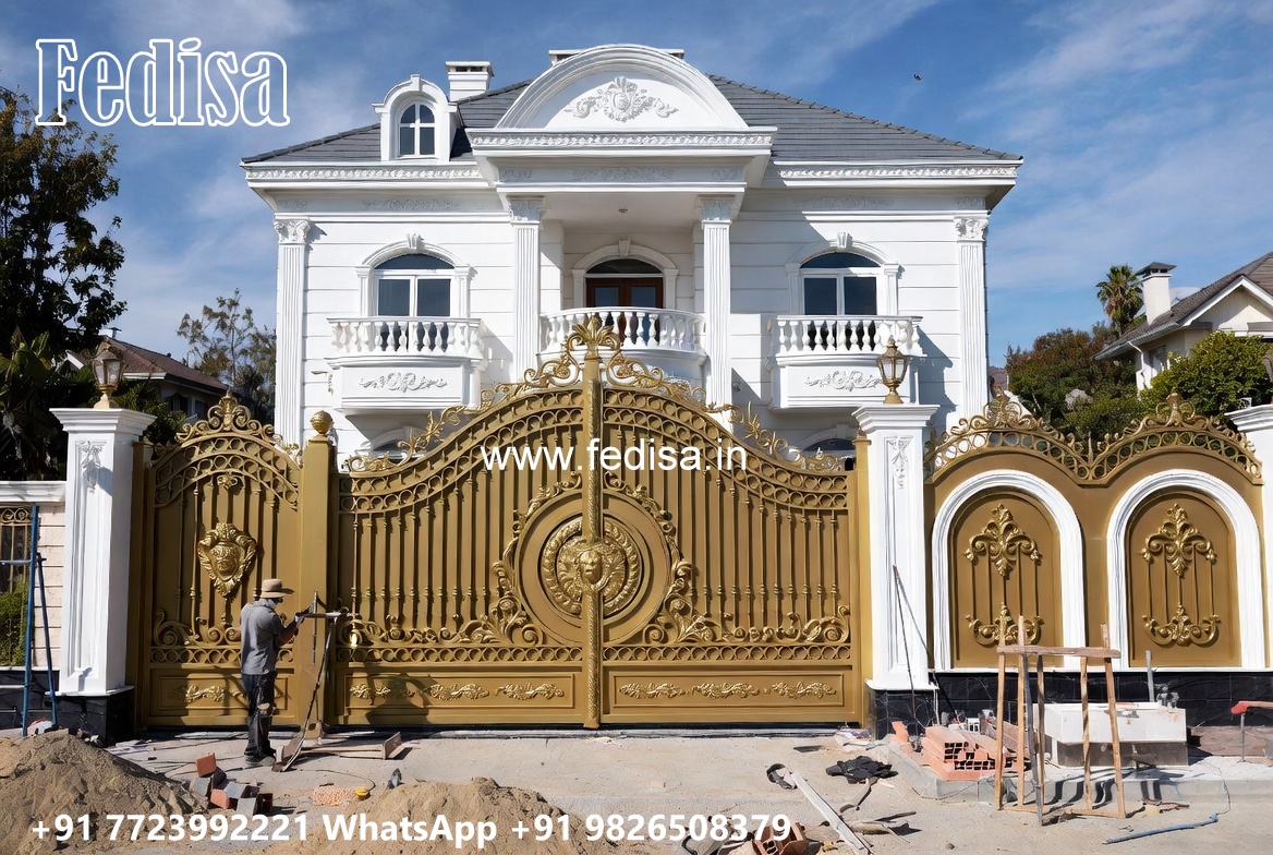 Small Main Gate Design, Steel Gate Design For Temple Main Gate Lighting In Outdoor