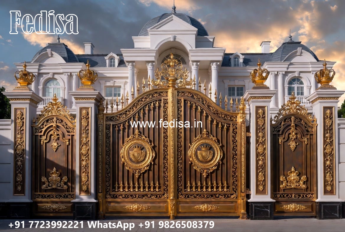 Steel Framed Wooden Gates, Modern Gate Wall Design Iron Gate Stock Photos And Images