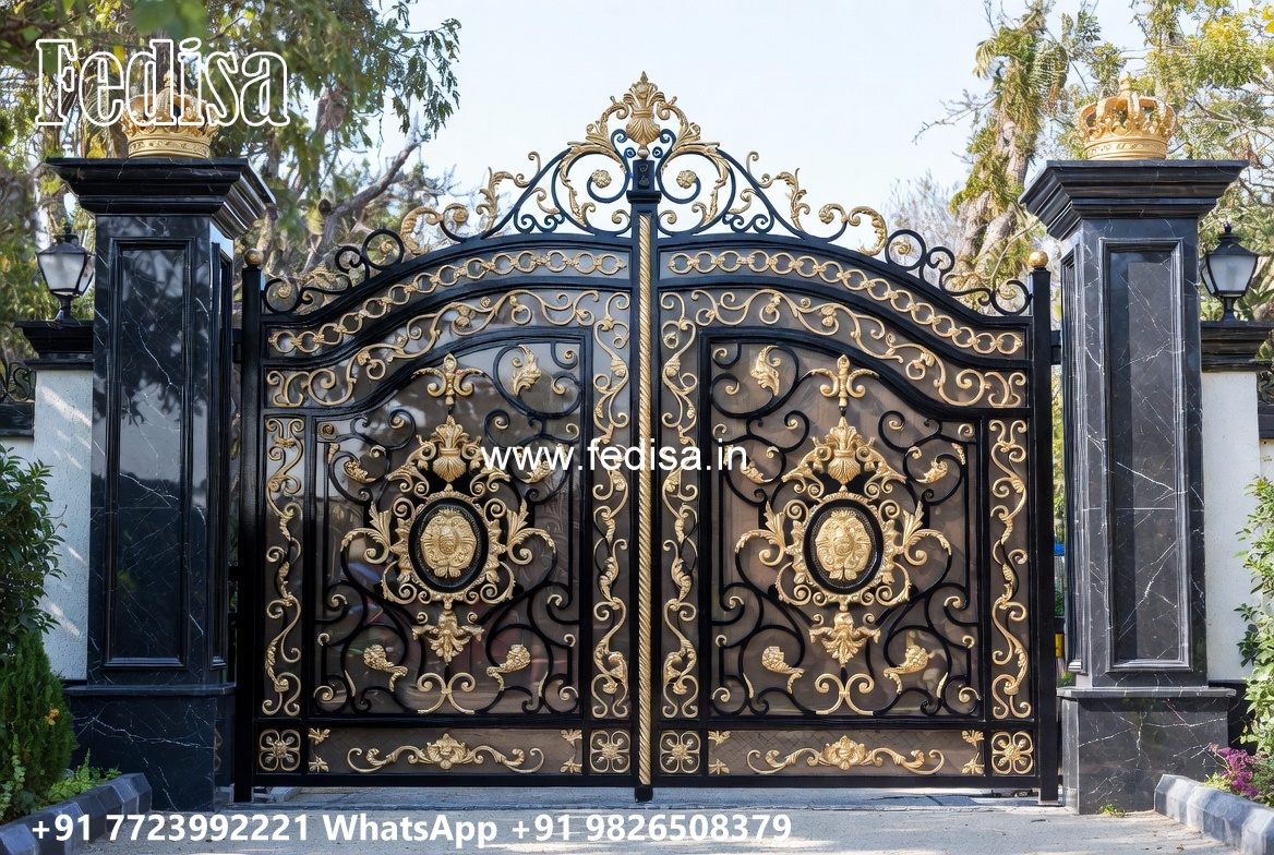 Steel Gate New Design, Lohe Ke Gate Design Wale Main Gate Lighting In Outdoor