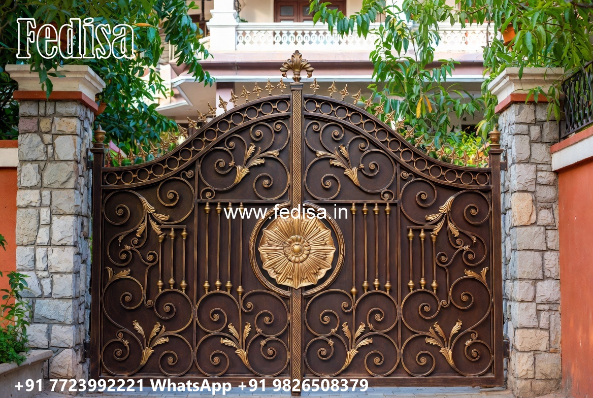 Steel Gate Single Door, Contemporary Wrought Iron Gates Main Gate Lighting In Outdoor
