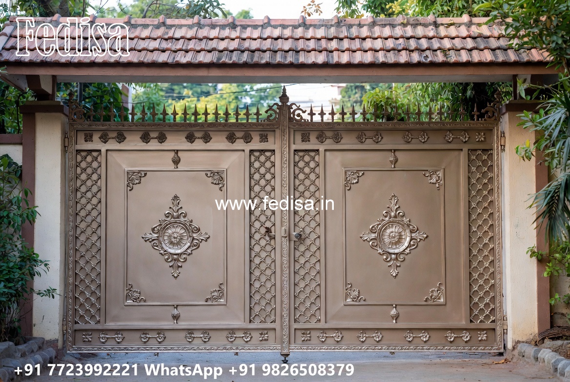 Steel Gate Single Door, Modern Metal Fences Main Gate Lighting In Outdoor