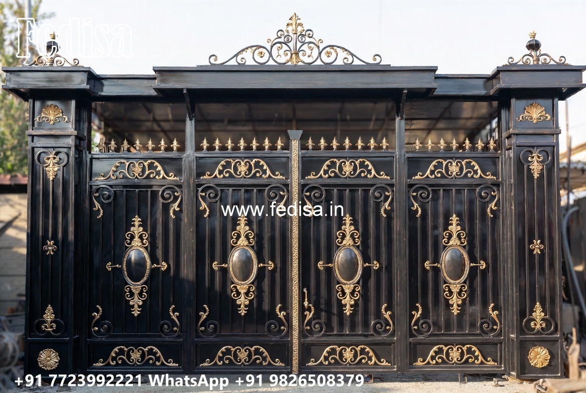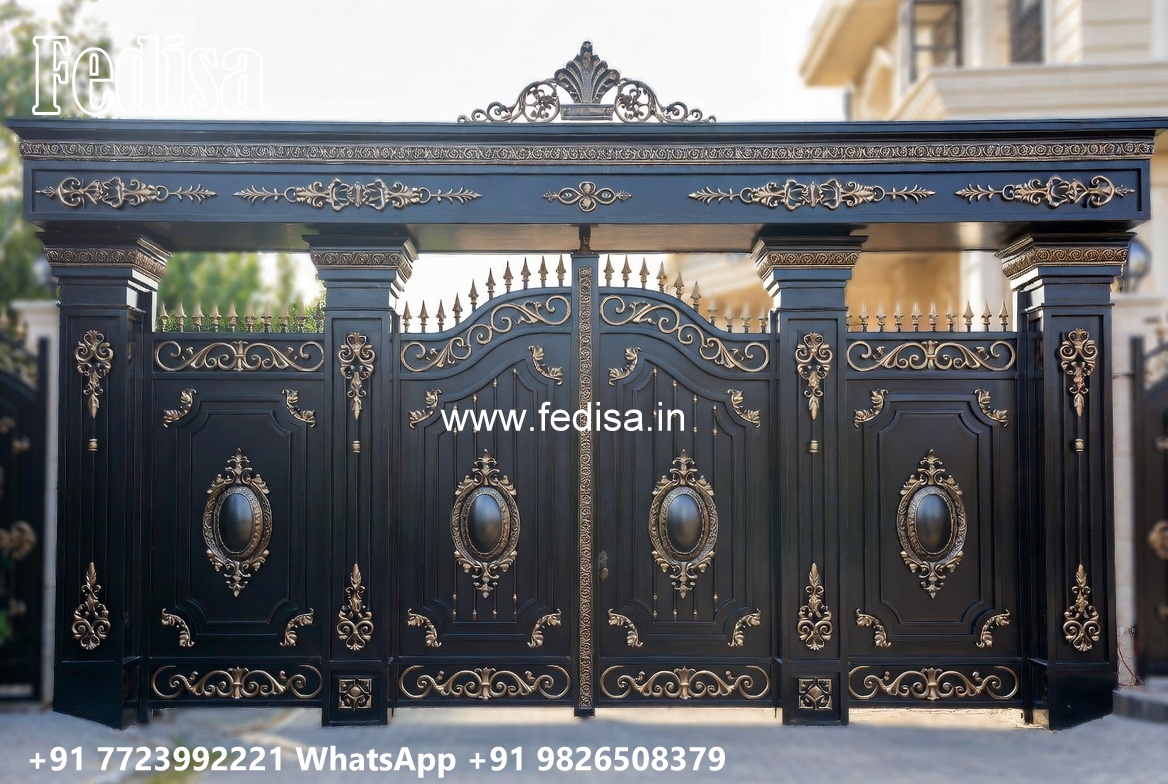 Swing Gate Design, Iron Single Gate Design Main Gate Lighting In Outdoor