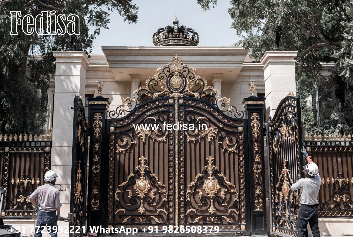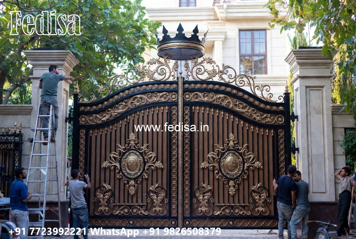 Swing Gate Design, Modern Front Gate Design Main Gate Lighting In Outdoor